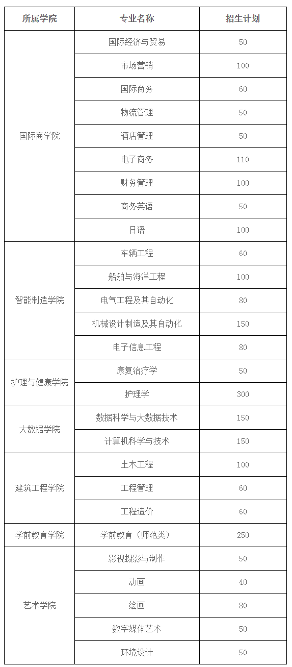 备注:1.对参加专升本统一考试,达到我校同专业录取标准的自荐考生,单独增列招生计划。